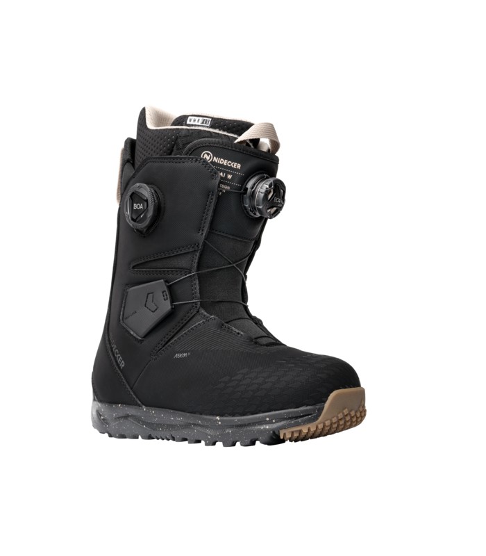 The Altai-W is the centrepiece of our new women’s boot collection, offering premium features and freeride-friendly support at an unbeatable price. It’s built around an asymmetrical upper that fits perfectly with Nidecker and Flow binding straps, eliminating pressure points. The Dual BOA lacing system features textile-coated laces and twin dials to allow you to control the upper and lower sections independently. Underneath, our lightweight B.F.T Gravity 2.0 outsole delivers awesome cushioning and traction, with a rubber toe-tip to boost grip when hiking over ice and rock.